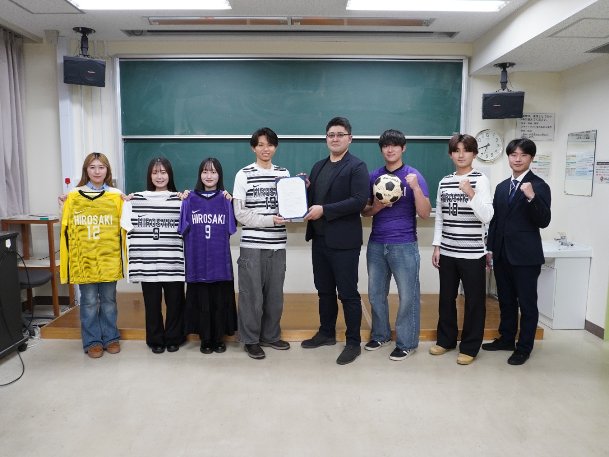 弘前大学全学サッカー部と有限会社藤喜建設のスポンサー契約が締結されました。